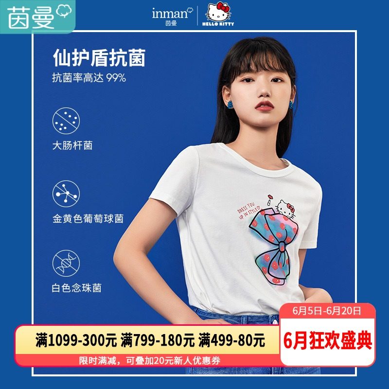 【HELLO KITTY联名】茵曼2021夏立体贴布绣花标志英文印花抗菌T恤热门设计联盟服务商